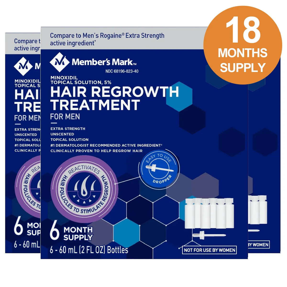 Get started today and take the first step toward renewed confidence with Member’s Mark Minoxidil 5% — the easy, effective way to fight male pattern baldness and promote long-term hair regrowth.