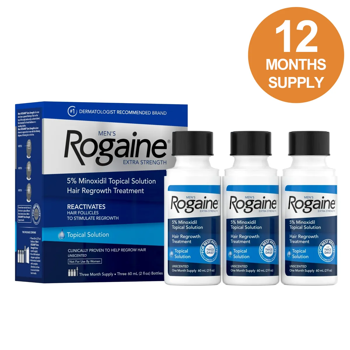 Take control of hair thinning and loss with Men’s Rogaine® 5% Minoxidil Liquid Hair Regrowth Treatment — the first FDA-approved brand for topical use of minoxidil and trusted by millions worldwide. Clinically proven to stimulate hair regrowth by up to 34% after 16 weeks*, this extra-strength formula helps reactivate inactive hair follicles and extend the natural growth phase of your hair.